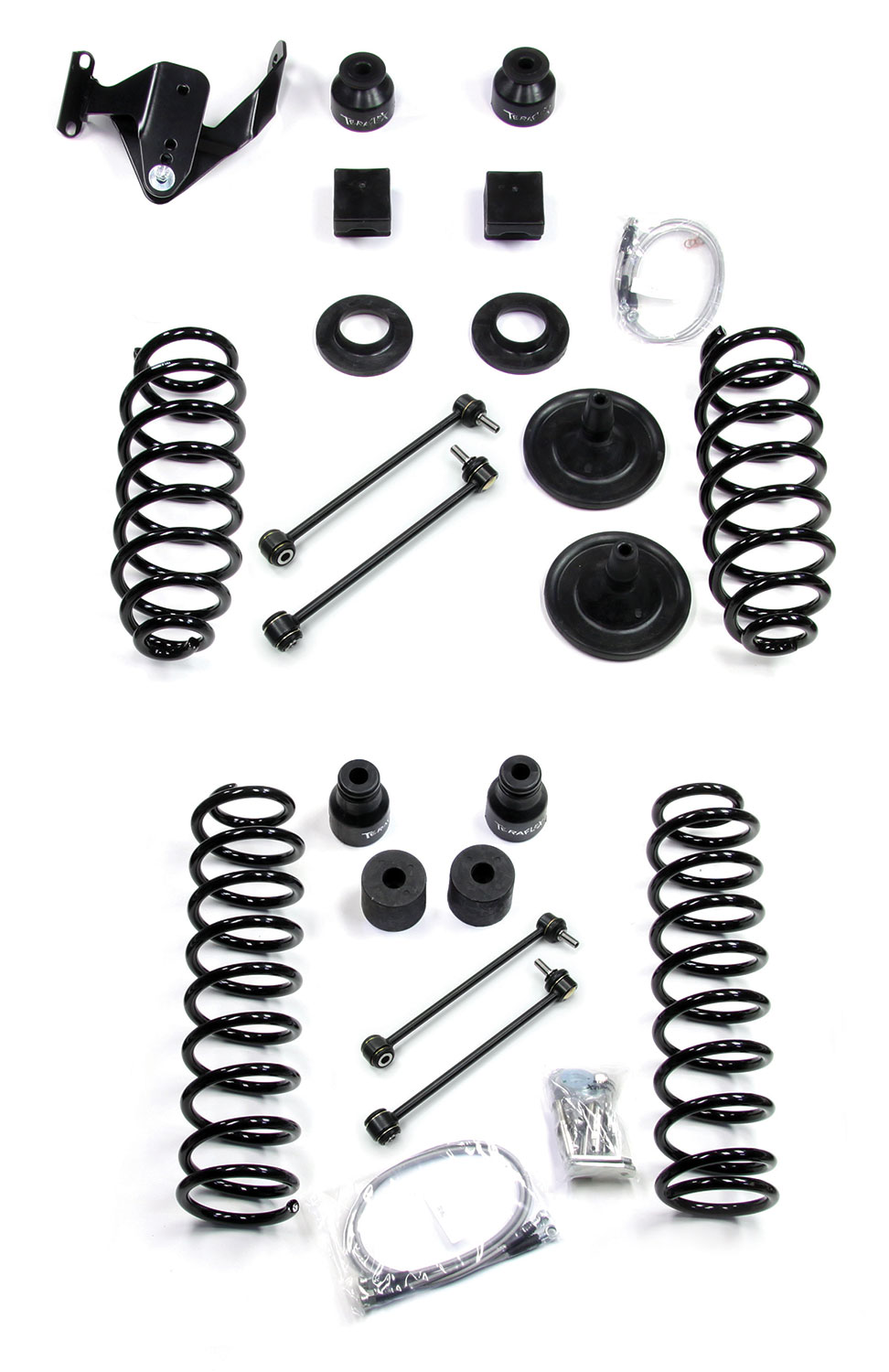 The TeraFlex JK 2dr: 4 Inch Coil Spring Base Lift Kit includes just the basic lift components only and doesn't have the drivability of a full suspension system. Requires adjustable control arms and adjustable front track bar to correct suspension geometry. An adjustable rear track bar is recommended.