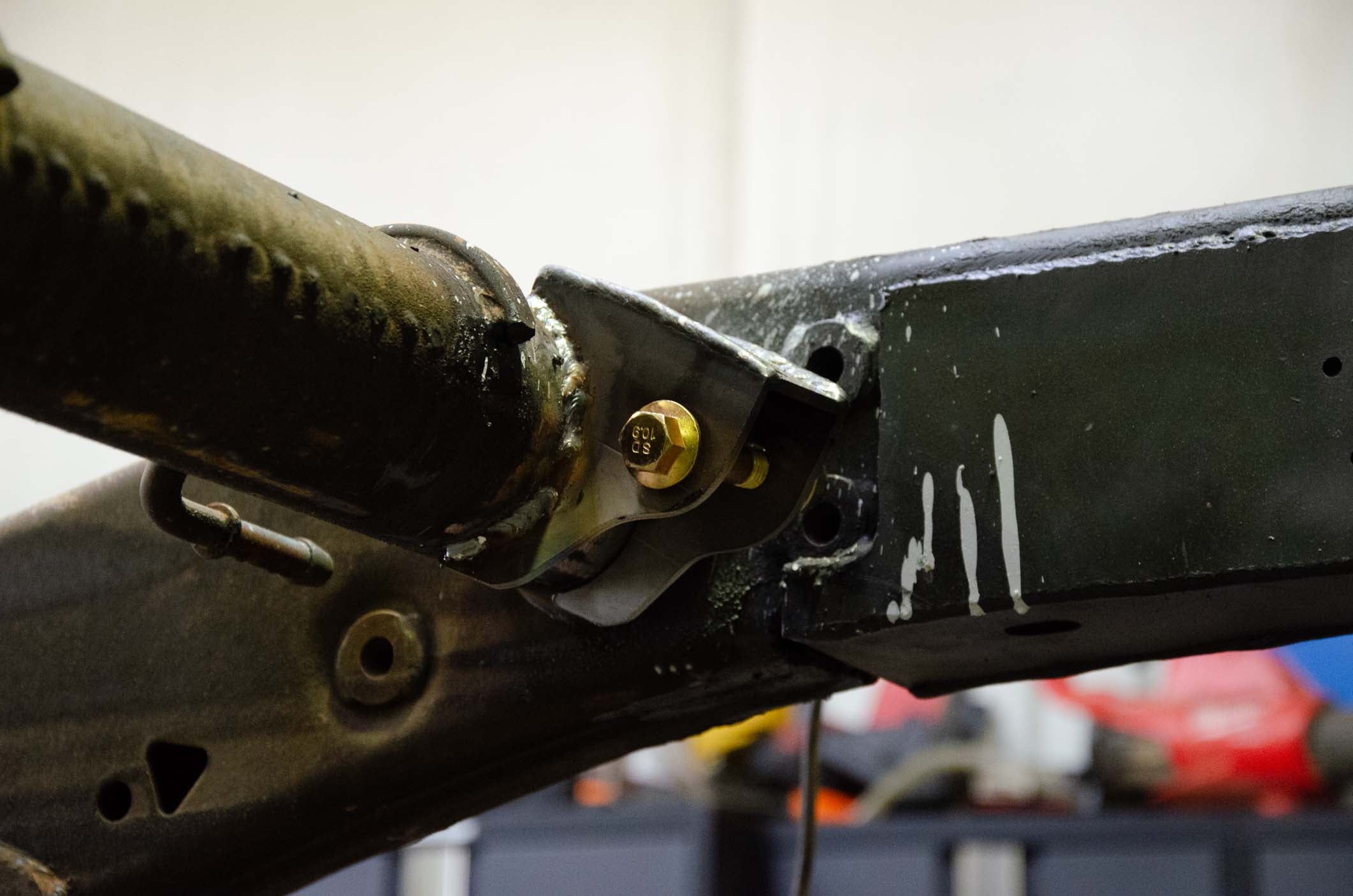 - Driver side mount is mounted on the Rear Shock Tube Crossmember