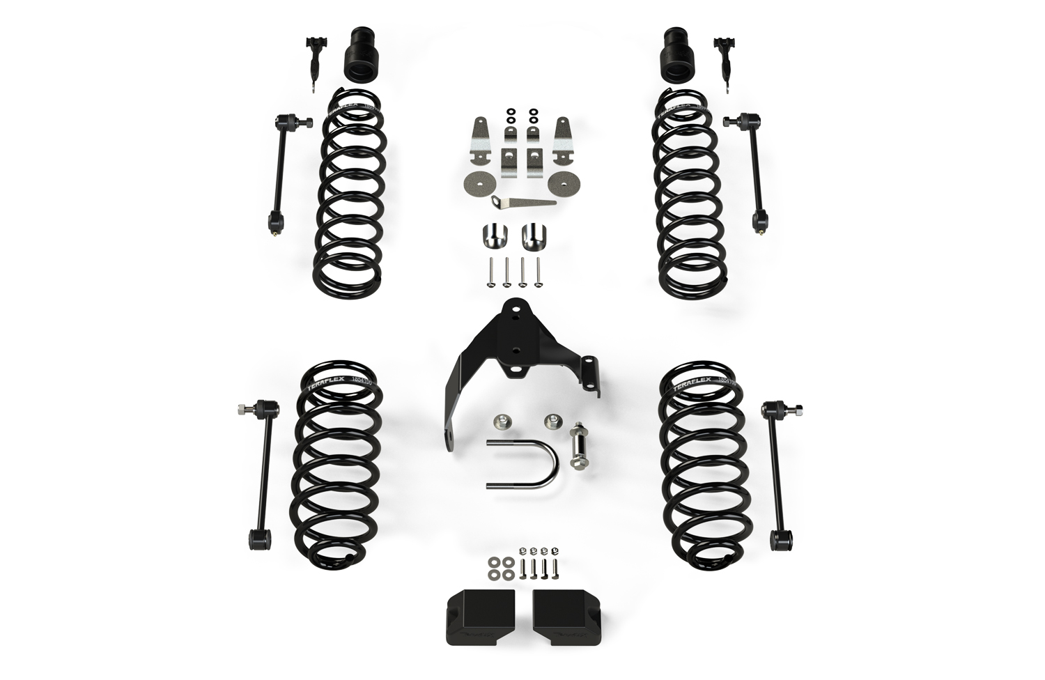 The TeraFlex JK 4dr: 3 Inch Coil Spring Base Kit includes just the basic lift components only and doesn't have the drivability of a full suspension system.