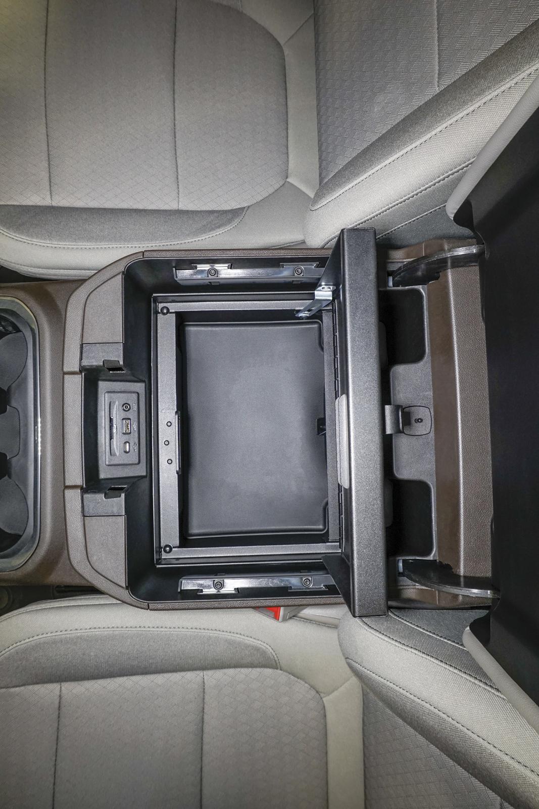 Chevy/GMC owners secure some peace of mind by installing the fully integrated and concealed Tuffy Security Console safe. As part of our ever-expanding line of console safe safes for trucks, the Tuffy Console safe accommodates the OEM USB, SD and AUX ports providing style, security and convenience.